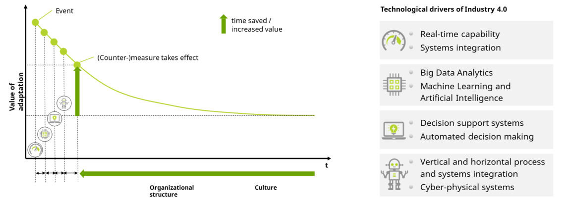 Dieses kollaborative und dienstleistungsorientierte Ökosystem ermöglicht es den Nutzern auch, die Reaktionszeit auf unerwartete Ereignisse zu verkürzen. Wie in Abbildung 3 und Abbildung 4 dargestellt, können alle Reaktionsphasen auf ein Ereignis durch die Digitalisierung verbessert werden: